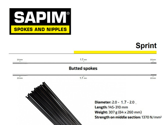 Sapim Sprint (2.0-1.7-2.0mm) - Negro - Straightpull