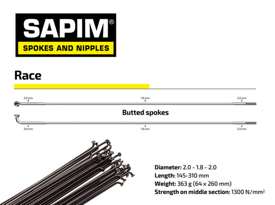 Sapim Race (2.0-1.8-2.0mm) - Negro - J-Bend